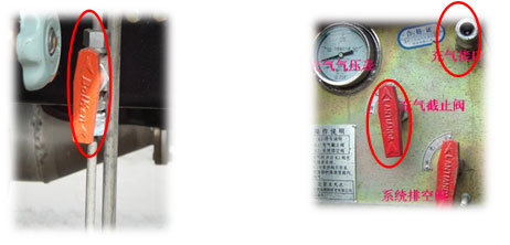 2.充氣前:車輛進入充氣位置后應拉住剎車。關閉整車電源。取下充氣閥防塵塞或插銷。插加氣槍頭,打開充氣截止閥(手柄呈水平狀),開始充氣。