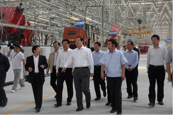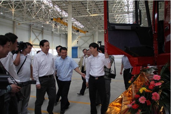 張書記在總裝車間西門公司展板前駐足觀看,聽取了魏總關于公司發展情況的匯報。對于陜汽落戶淮南、成為淮南首個汽車產業乃至華東地區的首個新能源重卡基地,張書記給予了高度贊揚。隨后,張書記興致勃勃地參觀了先進的總裝配生產線,并不時詢問設備和工藝流程及重卡的有關性能指標、節能降耗及重卡市場受煤炭市場、基本建設等影響的應對措施。當張書記了解到企業采取各種措施,搶抓機遇,利用市場冷淡期抓緊研發,創新產品,首輛試裝車已于今年6月28日成功下線,并且是節能、環保型天然氣重卡時十分高興。
