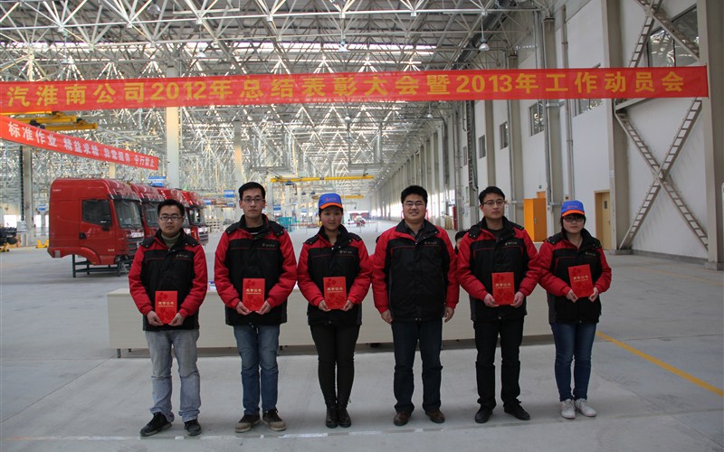 面對充滿機遇與挑戰的2013年,公司將繼續按照陜汽控股集團“做強重卡 做大商用車 培育新的增長點 實現可持續發展”的戰略要求,承載集團布局華東的戰略希望,開拓創新、奮勇拼搏,濃墨重彩的譜寫淮南公司輝煌絢麗的2013年,成為集團在華東地區的戰略高地!