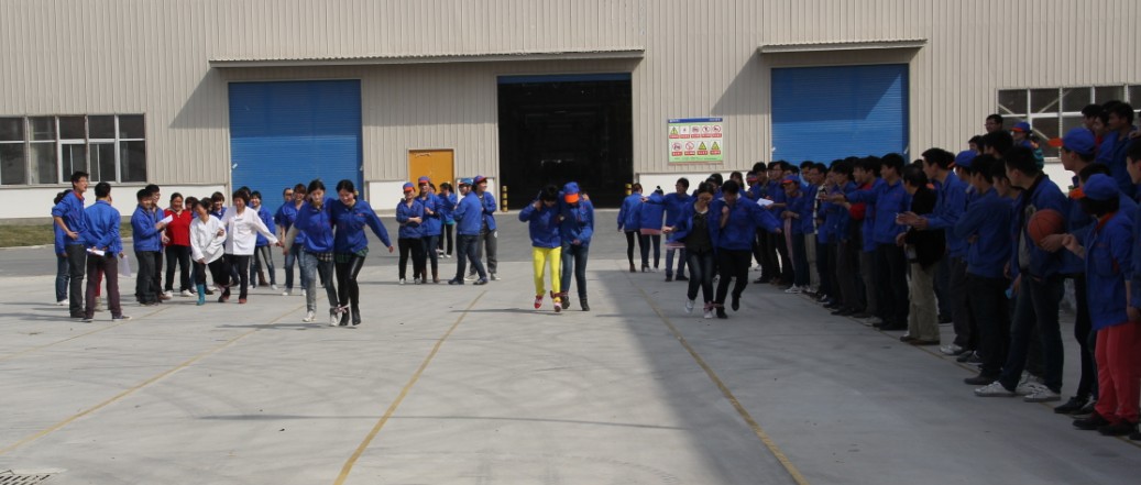 首先進(jìn)行的是“兩人三足”比賽,女職工兩兩組合蓄勢待發(fā),男職工分列賽道兩側(cè),作為拉拉隊(duì)吶喊助威。隨著一聲清脆的哨聲,各組選手隨即出發(fā),展開激烈的角逐。比賽營造出的緊張氣氛,讓參賽選手專注力異常集中,似乎每一組選手都恨不得是這個(gè)賽道上的最終的冠軍。賽道兩側(cè)的拉拉隊(duì)員也非常出色,加油吶喊聲一浪高過一浪,完全淹沒了賽道上選手們?yōu)楸舜伺浜隙l(fā)出的口號(hào)聲。