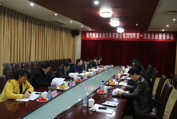 2月28日上午,陜汽淮南公司在淮南新錦江大酒店召開(kāi)2013年第一次股東會(huì)暨董事會(huì)。會(huì)議由公司董事長(zhǎng)郝曉乾主持,公司副董事長(zhǎng)蘇信斌及公司其他董事、監(jiān)事、公司經(jīng)營(yíng)班子等14人出席了會(huì)議。