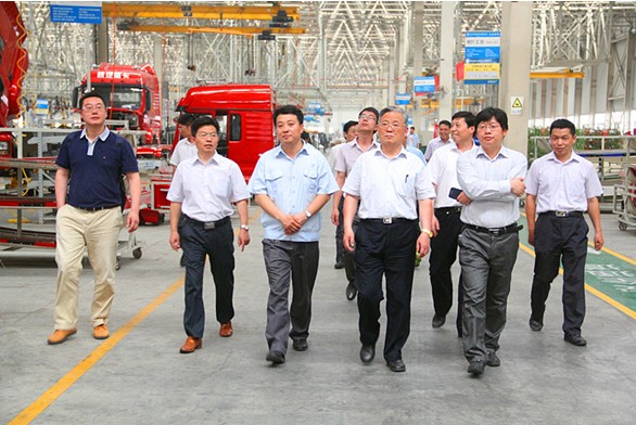 在展示中心,魏總通過展示圖片和宣傳視頻向一行人重點介紹了陜汽三次激情創業的歷史、公司發展規劃及新能源產品優勢。隨后,一行人來到總裝配車間,全面了解了公司年度底盤生產目標和產銷規模,并通過如火如荼的生產現場,直觀地了解了公司生產經營現狀。