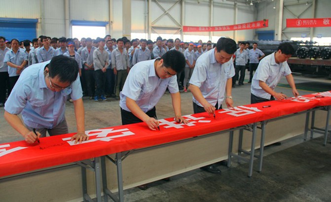 為貫徹落實公司 “安全生產月”活動,強化“紅線”意識,弘揚安全文化,普及安全知識,營造“我要安全”的安全生產氛圍,6月9日上午9:00,淮南公司在總裝分廠召開2014年“安全生產月”動員大會,公司領導、集團幫扶團隊及公司全體員工共同參加了此次大會。 會上,首先由公司總經理魏炳亮作動員講話,并就“安全生產月”活動以及近期安全生產工作進行部署。一是以夯實基礎為重點,深化對安全月活動主題的認識。要求全體干部職工要緊緊圍繞“強化紅線意識,促進安全發展”的主題,深刻理解、準確把握、保障落實。二是以到位做實為標準,落實責任主體安全生產責任制。要求安全生產責任落實到每個環節、每個崗位、每個人,為安全生產提供可靠保障。 三是以安全月活動為契機,全面推進安全生產工作。各部門要以人為本出發,科學策劃、精心組織,結合公司實際,既要搞好規定動作,又要抓好自選動作,在深入開展治理行動、宣傳教育上下功夫。隨后,魏總與各部門安全生產第一責任人簽訂2014年度安全生產目標責任書,全體干部職工在安全生產月主題橫幅上簽名。 本次“安全生產月”動員大會的召開,促進和諧安全企業環境的形成,使安全責任“內化于心、固化于制、外化于行”,對建立緊密圍繞企業安全文化,創建全員安全價值觀起到強有力的推動作用。
