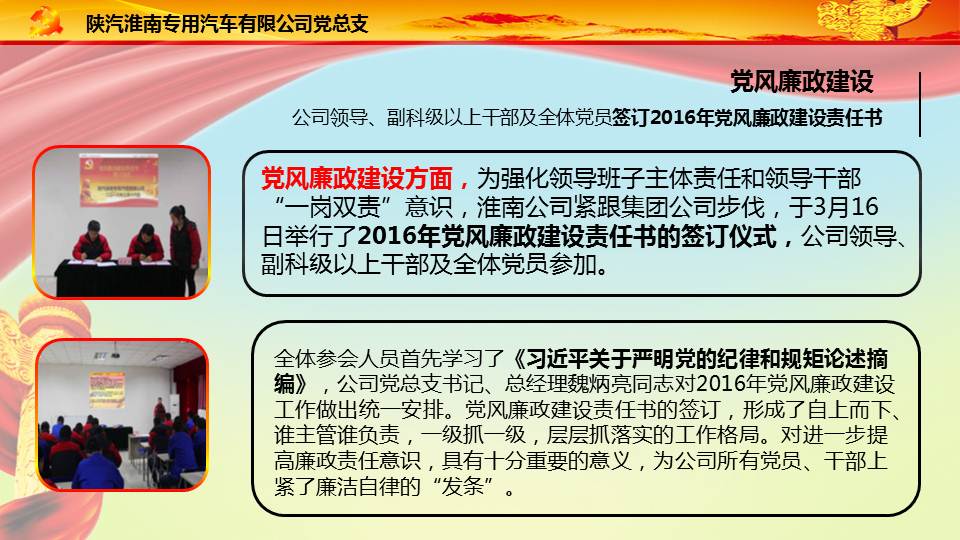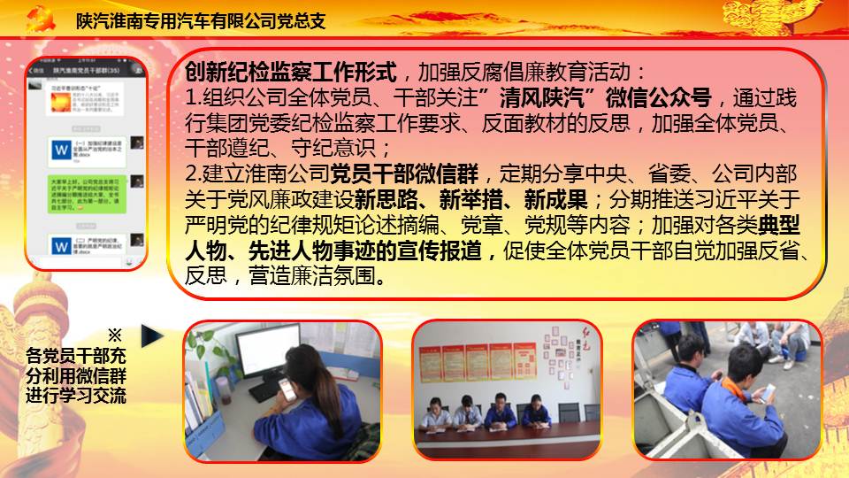 陜汽淮南公司黨總支創新紀檢監察形式,多措并舉筑牢思想防腐工事發布時間:2016.05.26 已閱 次 [大] [中]