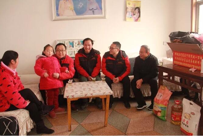 在走訪困難職工朱雪松一家時,王建業總經理親切地與其妻子、孩子及年邁的父親對話攀談,詳細了解一家人的生活近況,當得知朱雪松母親早逝,平日里只有妻子一人在家中照顧三個年幼的孩子時,王建業總經理輕柔地攬過身邊朱雪松的小女兒,“確實不容易,家里就朱雪松一個頂梁柱,平日里工作也忙,希望你們多多理解雪松、也多多支持他的工作,如果孩子上學教育或是家里有什么困難,不要有顧慮,一定要告訴公司”,“謝謝伯伯!”小女兒一聲奶聲奶氣的感謝頓時逗樂了所有在場人員。朱雪松表示,加入淮南專用車快5年了,平時無論是工作還是生活上,領導同事們都對他給予了無私的關懷與照顧,他個人非常感動,在2018年,他將繼續把這份溫暖記在心中,以更加優異的業績,更加豐碩的工作成果回報公司。歡樂相聚的時光總是過得飛快,臨行前,王建業總經理依舊不忘囑咐朱雪松一家要多注重子女的教育與生活,同時也要多多注意身體,堅定信心、保持樂觀的心態,一起過一個愉快祥和的新年。