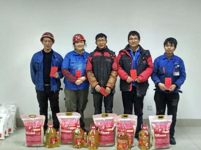 新春將至,困難職工的生活始終牽掛著公司領導的心。2月7日下午,公司總經理王建業,黨總支書記、副總經理茍海成,公司工會副主席趙林波一行來到朱雪松等困難員工家中走訪慰問,為他們送去慰問金、面粉、大米、食用油等春節禮品,并轉達了公司黨政工會對職工的深切問候和美好祝福。