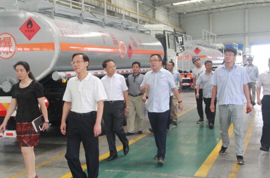 8月22日上午,淮南市人民政府黨組成員、副市長翟方明在開發區工委書記、管委會主任張海濤的陪同下到淮南專用車調研,公司總經理王建業,黨總支書記、副總經理茍海成,副總經理馬嘯,財務總監楊寶會熱情接待,并陪同參觀公司展示中心與生產車間。