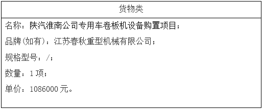 二、項目名稱:陜汽淮南公司專用車卷板機設備購置項目